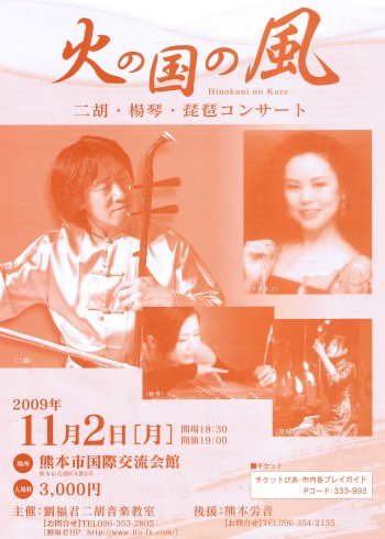 火の国の風 二胡・楊琴・琵琶コンサート お知らせ