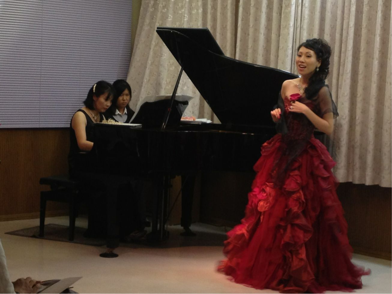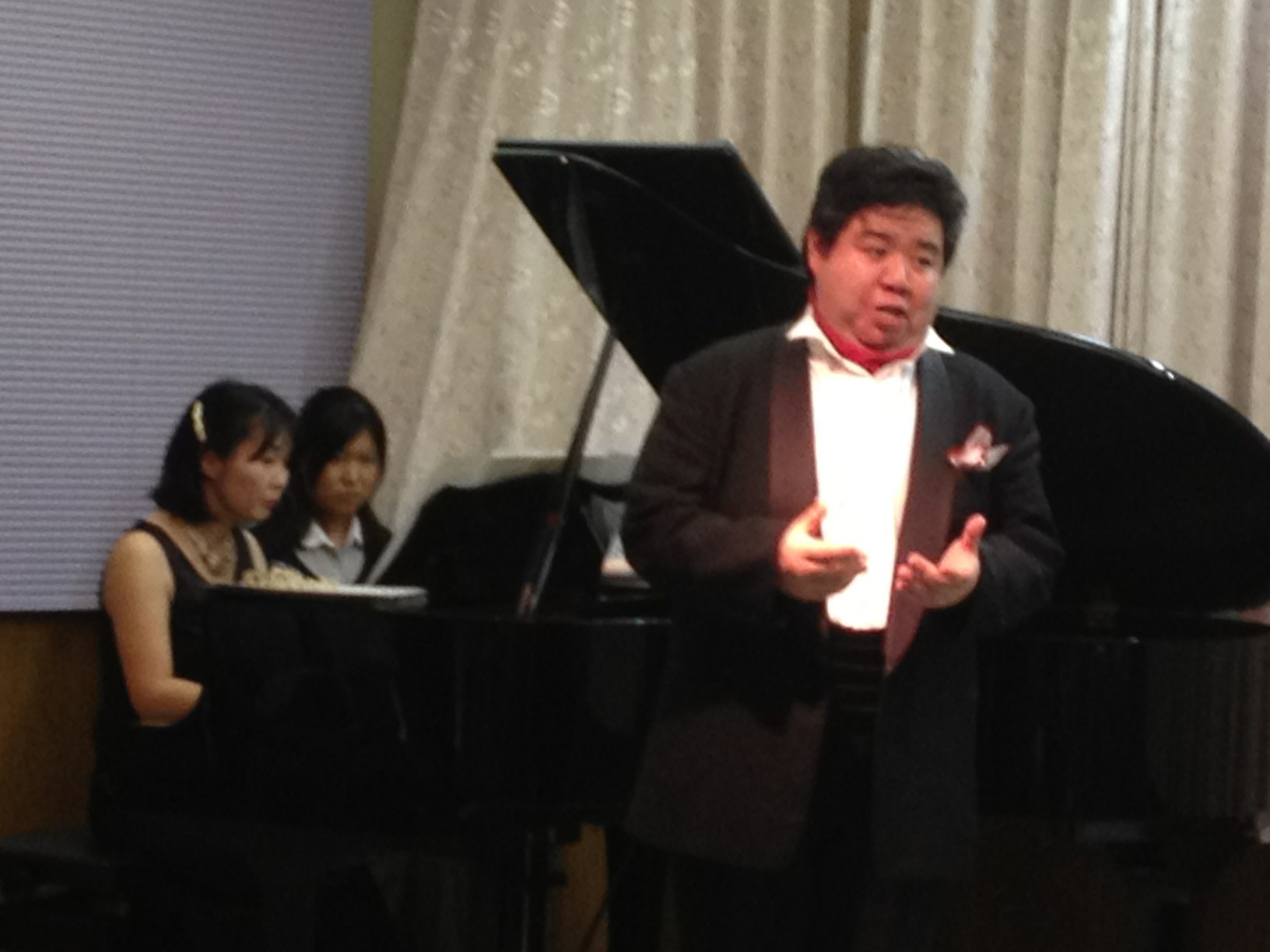 リハ、場当たりと時間は進み、いよいよ開演です。 グルッポ・ヴィーヴォの歌い手たちは第1部 大正浪漫を歌う というテーマで大正時代に作曲された曲を華やかに演奏されました。
